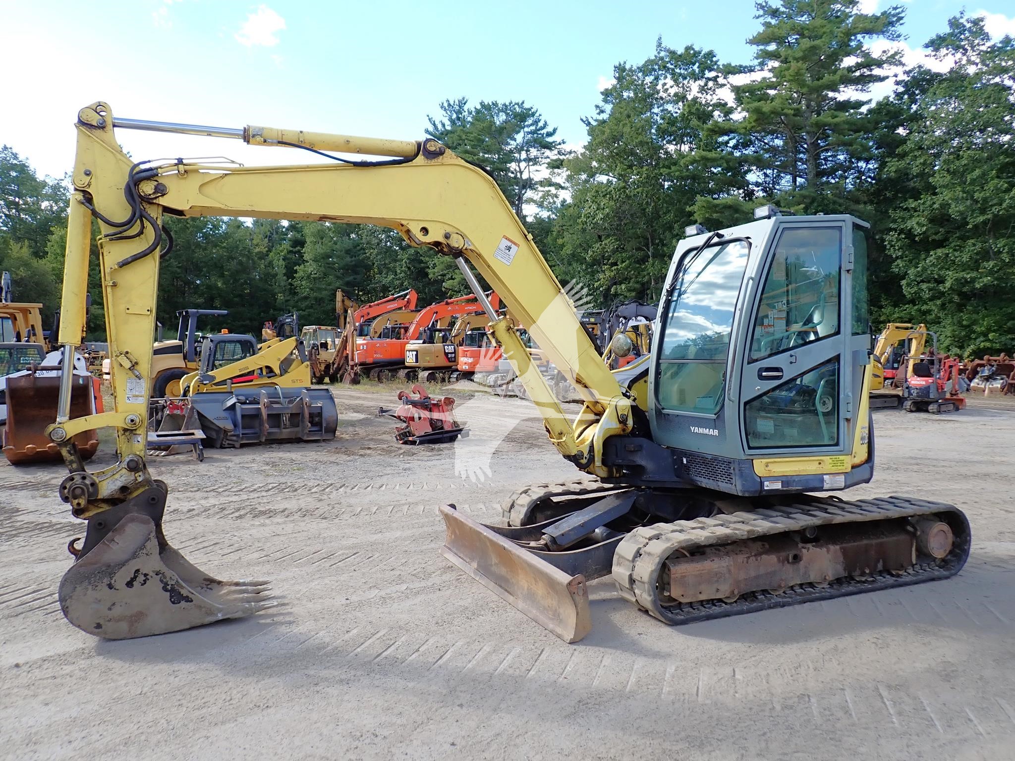 24" digging bucket & 4 ft tilt cleanup bucket, cab w/ a/c, 2-way aux hyd, hyd coupler, 7'4" blade, 2 speed, 4 cyl Yanmar, 18k lbs