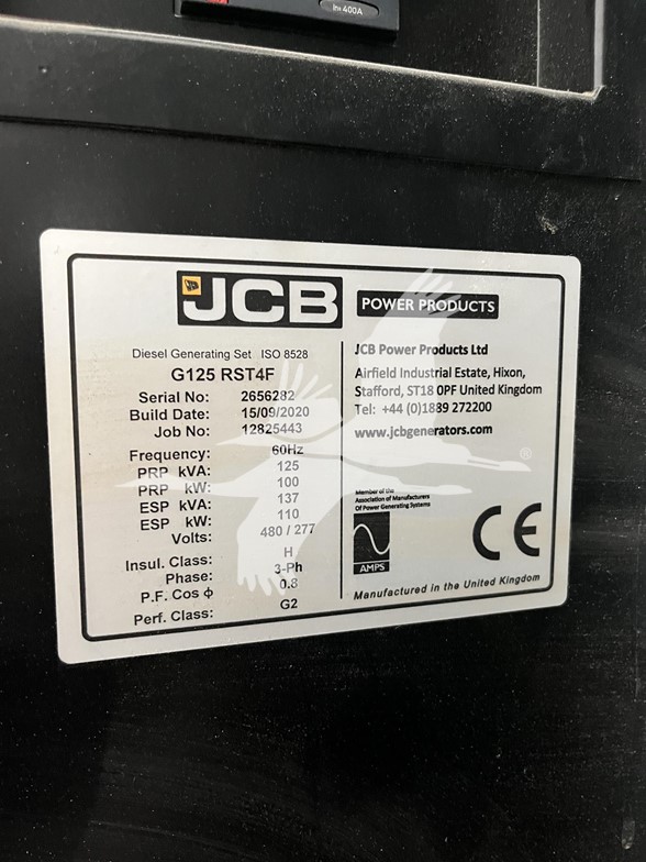 100 KW (125 KVA), 132 GALLON FUEL TANK, TRAILER MOUNTED/ PINTLE HITCH... LOCATION/CONDITION SUBJECT TO CHANGE