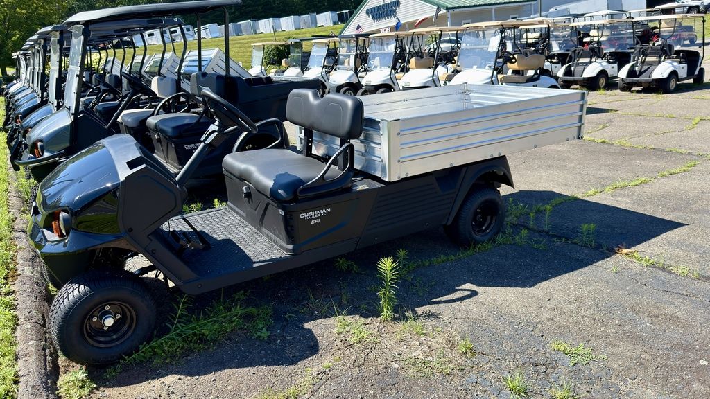 Connecticut Trailers features the following options for this Cushman Golf Car: • Tail Lights • Black Seats • Headlights • Turn Signals • Aluminum 6' Bed • Hitch • Brushguard
