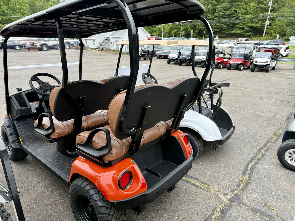 Connecticut Trailers features the following options for this E-Z-GO Golf Car: • Amarillo Brown Seats • Adventure Package • Charger • Canopy w/ Extension • Split Windshield 2025 E-Z-Go Liberty™ ELiTE Lithium Solar FlareGive Town Car a New MeaningGo where no golf cart has gone before in the best-in-class E-Z-GO Liberty. Turn heads with premium packages featuring LED cupholders and sculpted foam seats for extra comfort. Exclusively powered by a proven, maintenance-free ELiTE™ lithium powertrain activated by Samsung SDI Lithium technology, you'll be cruising carefree for years to come.Features may include:Unmatched Handling and ControlAn optimized wheelbase gives you a tighter turning radius and enhanced maneuverability so that you have the most control over every ride.Premium InteriorImpress your passengers with the stylish interior of the Liberty including lighted cupholders, a premium steering wheel, and a unique key switch.Four Forward-Facing SeatsEnjoy a spacious and secure second row that will give your passengers new perspective with every ride.IntelliBrake™ TechnologyExperience superior efficiency with an automatic parking brake with IntelliBrake™ technology.