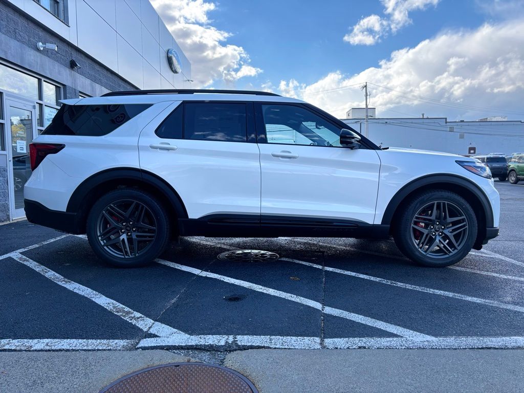 Navigation System|10 Speakers|AM/FM radio: SiriusXM with 360L|Radio: B&O Sound System by Bang and Olufsen|Air Conditioning|Automatic temperature control|Front dual zone A/C|Rear air conditioning|Rear window defroster|Memory seat|Power driver seat|Power steering|Power windows|Remote keyless entry|Steering wheel mounted audio controls|Four wheel independent suspension|Speed-sensing steering|Traction control|4-Wheel Disc Brakes|ABS brakes|Dual front impact airbags|Dual front side impact airbags|Emergency communication system: 911 Assist|Front anti-roll bar|Knee airbag|Low tire pressure warning|Occupant sensing airbag|Overhead airbag|Rear anti-roll bar|Power Liftgate|Brake assist|Electronic Stability Control|Exterior Parking Camera Rear|Auto High-beam Headlights|Delay-off headlights|Front fog lights|Fully automatic headlights|Panic alarm|Security system|Speed control|Auto-dimming door mirrors|Bumpers: body-color|Heated door mirrors|Power door mirrors|Spoiler|Turn signal indicator mirrors|Apple CarPlay/Android Auto|Auto-dimming Rear-View mirror|Compass|Driver door bin|Driver vanity mirror|Front reading lights|Garage door transmitter|Heated steering wheel|Heated/Ventilated Miko Captain's Chairs|Illuminated entry|Leather steering wheel|Outside temperature display|Overhead console|Passenger vanity mirror|Rear reading lights|Sport steering wheel|Tachometer|Telescoping steering wheel|Tilt steering wheel|Trip computer|3rd row seats: bench|Front Bucket Seats|Front Center Armrest|Heated front seats|Heated rear seats|Power passenger seat|Split folding rear seat|Ventilated front seats|Passenger door bin|Alloy wheels|Wheels: 21" Magnetite-Painted Aluminum|Rain sensing wipers|Rear window wiper|Speed-Sensitive Wipers|Variably intermittent wipers|Features Include: White 2026 Ford Explorer ST 4WD 10-Speed Automatic 3.0L EcoBoost V6 Features Include:.McGovern Ford of Framingham is proud to present this McGovern Certified... Price includes: $1000 - Retail Customer Cash. Exp. 01/05/2026