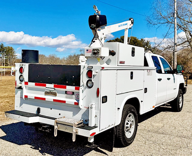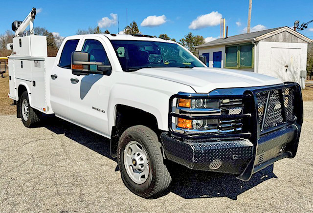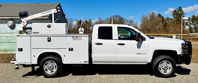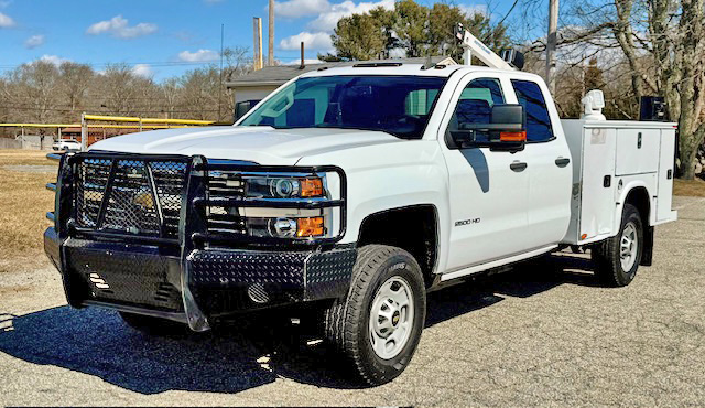 2017 CHEVY 2500 HD DOUBLE CAB 8’ UTILITY W/POWER AUTO CRANE 4X4. 6.0L V8, Auto, AC, PW, PL, Rust-Free Southern Truck, 67K, Fleet Maintained, $35,900., Westport, MA 508-636-5050