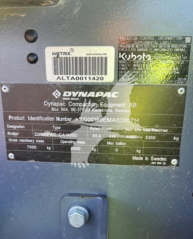 2021 DYNAPAC CA1400D stk#EQ0281270