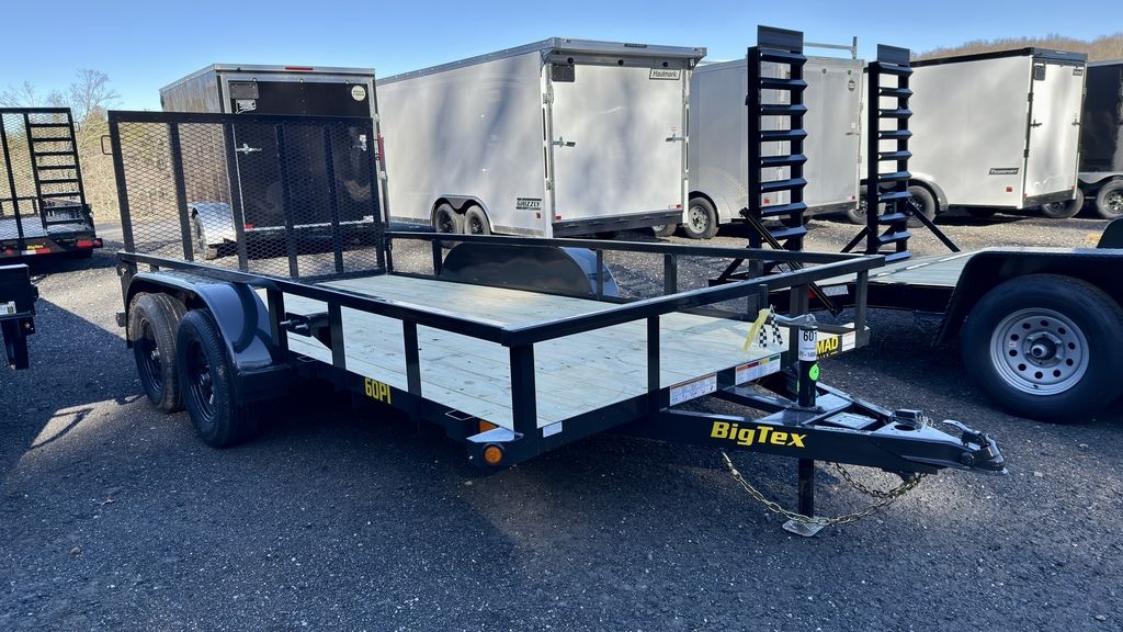 Connecticut Trailers features the following options for this BigTex Trailer: • 77"x14' • 4' Ramp Gate • Spare Mount 2026 Big Tex Trailers 60PI 60PI-14Tandem Axle Pipe Top Utility TrailerReady to haul light-duty equipment wherever a job needs doing, the durable and reliable 60PI Tandem Axle Pipe Top Utility Trailer is designed to make equipment transportation easy. It’s built to tackle the toughest jobs with a 6,000 lbs G.V.W.R. and reinforced structure for enhanced strength. In other words, it has the brawn to safely and securely get small tractors and side-by-sides to where they need to go. Plus, optional slide-in ramps make loading and unloading even easier, helping you focus on the task at hand.