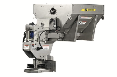 STAINLESS STEEL 5.5 CU YARD SPREADER.