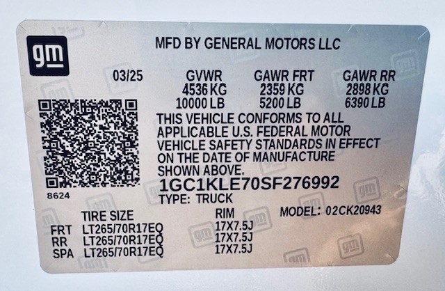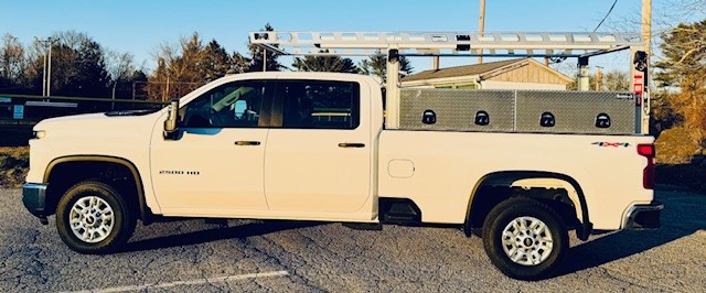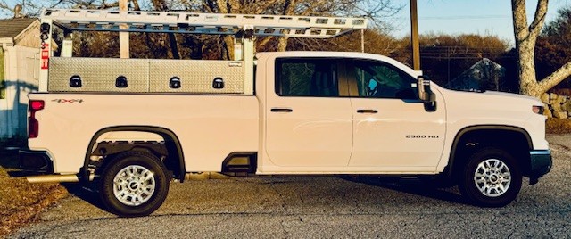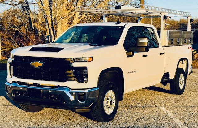 2025 CHEVY 2500 CREW CAB. 8’ BED, 4X4, 6.6L Gas, Auto, PW, PL, Ladder Rack, Alum. Toolboxes, 6-Passenger, Bluetooth, Back-Up Camera, 4 Available, 7,000 & 9,000 Miles, Factory 100K Warranty, $56,900., Westport, MA 508-636-5050