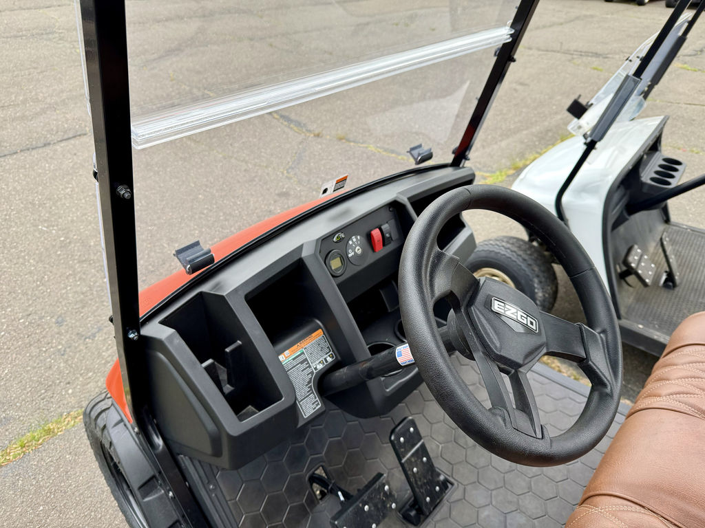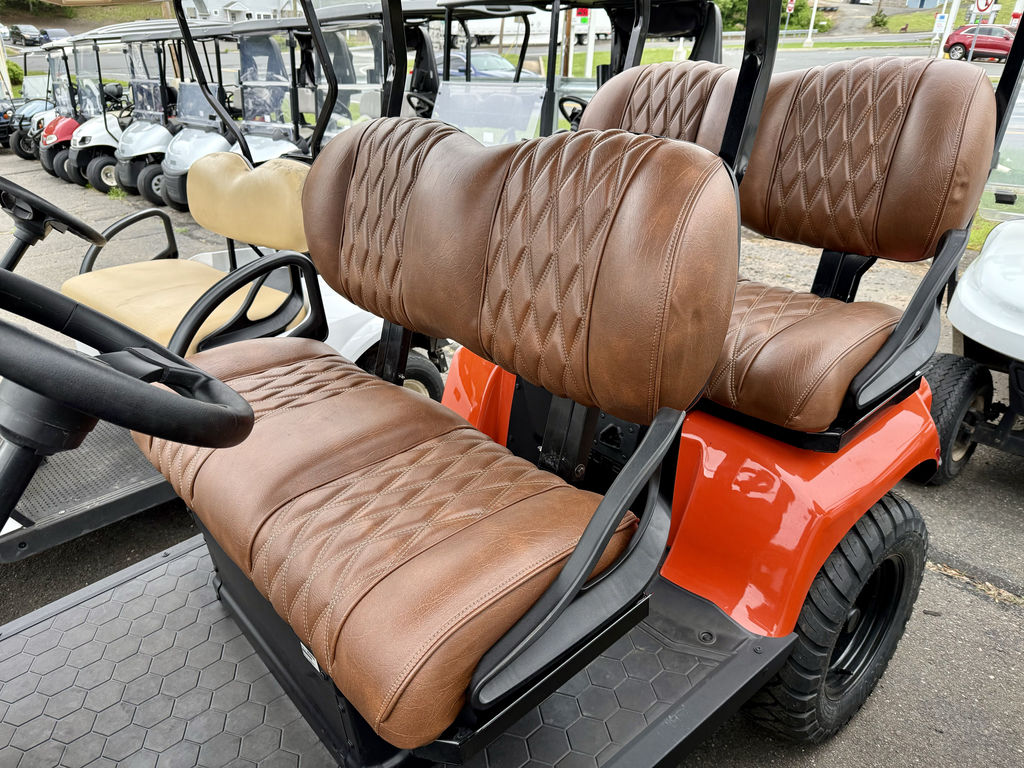 Connecticut Trailers features the following options for this E-Z-GO Golf Car: • Amarillo Brown Seats • Adventure Package • Charger • Canopy w/ Extension • Split Windshield 2025 E-Z-Go Liberty™ ELiTE Lithium Solar FlareGive Town Car a New MeaningGo where no golf cart has gone before in the best-in-class E-Z-GO Liberty. Turn heads with premium packages featuring LED cupholders and sculpted foam seats for extra comfort. Exclusively powered by a proven, maintenance-free ELiTE™ lithium powertrain activated by Samsung SDI Lithium technology, you'll be cruising carefree for years to come.Features may include:Unmatched Handling and ControlAn optimized wheelbase gives you a tighter turning radius and enhanced maneuverability so that you have the most control over every ride.Premium InteriorImpress your passengers with the stylish interior of the Liberty including lighted cupholders, a premium steering wheel, and a unique key switch.Four Forward-Facing SeatsEnjoy a spacious and secure second row that will give your passengers new perspective with every ride.IntelliBrake™ TechnologyExperience superior efficiency with an automatic parking brake with IntelliBrake™ technology.