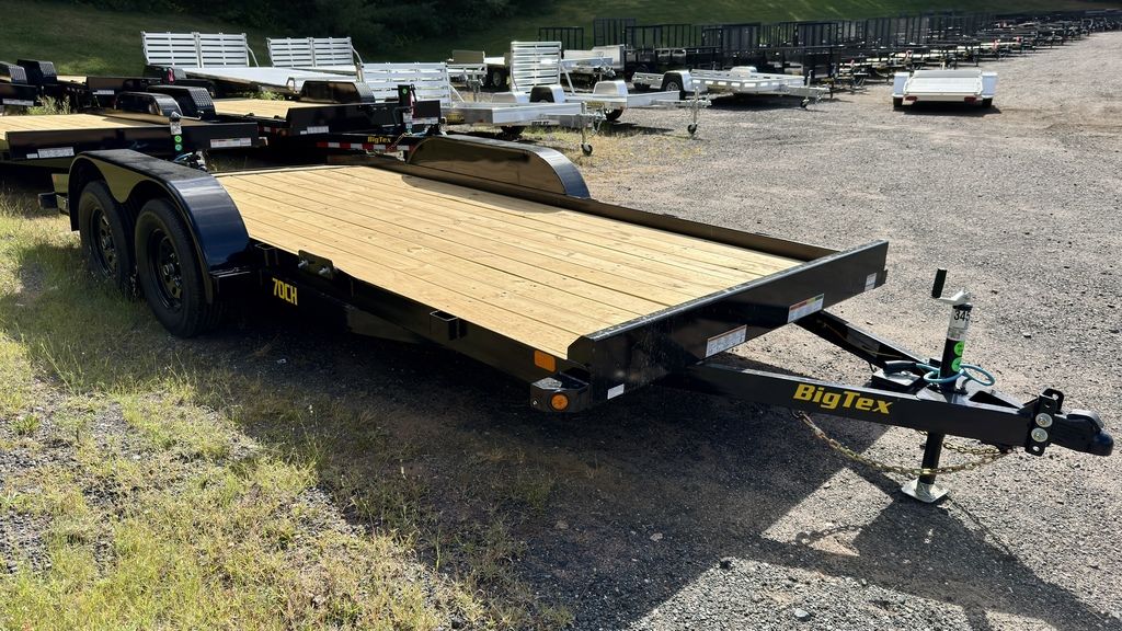 Connecticut Trailers features the following options for this BigTex Trailer: • 83"x16' • Dovetail • 4' SIR • Spare Mount 2026 Big Tex Trailers 70CH 70CH-16Tandem Axle Car HaulerWork harder and look great while doing it with the 70CH Tandem Axle Car Hauler, a tough and versatile car hauler purpose-built to transport cars, small tractors, ATVs, and side-by-sides. This tandem axle car hauler comes equipped with steel teardrop fenders that are bolted on for easy removal and reinstallation, giving you flexibility during loading and unloading and making maintenance easier. And if you want to make loading and unloading safer, an optional 4’ slide-in angle ramp package does just that. Pack it up. Haul it out. Get it done. The 70CH has your back.