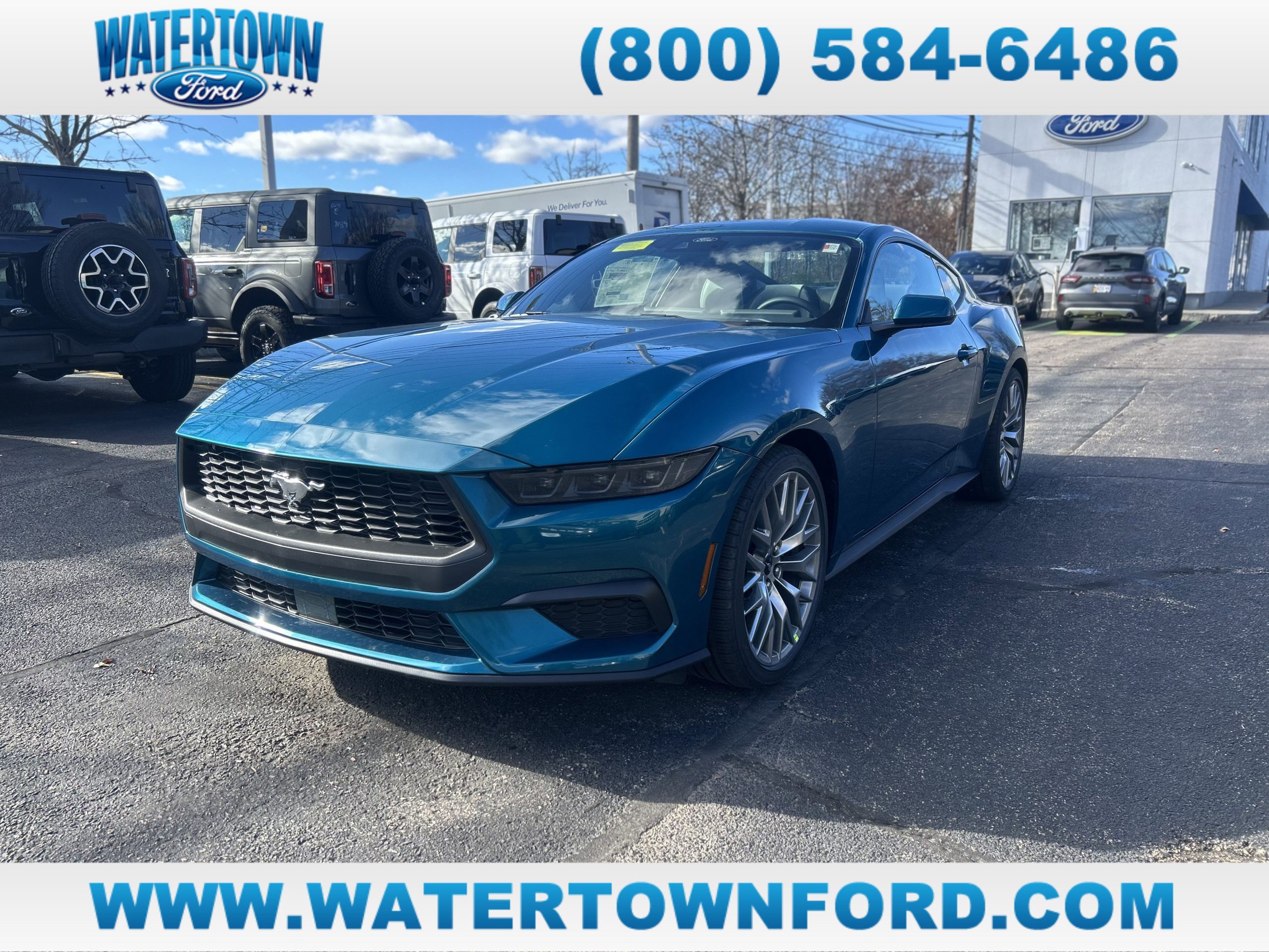 Adriatic Blue Metallic 2026 Ford Mustang EcoBoost Premium RWD 10-Speed Automatic EcoBoost 2.3L I4 GTDi DOHC Turbocharged VCT21/32 City/Highway MPG EcoBoost Premium Fastback