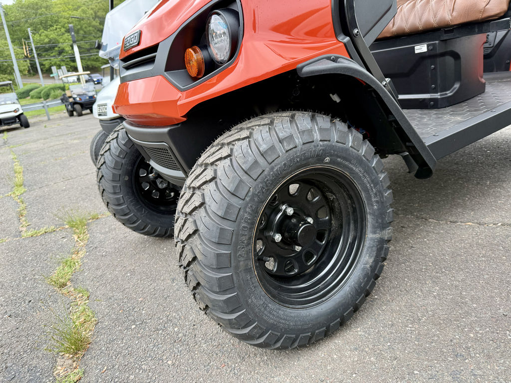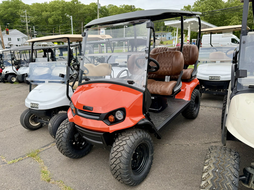 Connecticut Trailers features the following options for this E-Z-GO Golf Car: • Amarillo Brown Seats • Adventure Package • Charger • Canopy w/ Extension • Split Windshield 2025 E-Z-Go Liberty™ ELiTE Lithium Solar FlareGive Town Car a New MeaningGo where no golf cart has gone before in the best-in-class E-Z-GO Liberty. Turn heads with premium packages featuring LED cupholders and sculpted foam seats for extra comfort. Exclusively powered by a proven, maintenance-free ELiTE™ lithium powertrain activated by Samsung SDI Lithium technology, you'll be cruising carefree for years to come.Features may include:Unmatched Handling and ControlAn optimized wheelbase gives you a tighter turning radius and enhanced maneuverability so that you have the most control over every ride.Premium InteriorImpress your passengers with the stylish interior of the Liberty including lighted cupholders, a premium steering wheel, and a unique key switch.Four Forward-Facing SeatsEnjoy a spacious and secure second row that will give your passengers new perspective with every ride.IntelliBrake™ TechnologyExperience superior efficiency with an automatic parking brake with IntelliBrake™ technology.