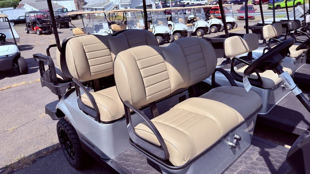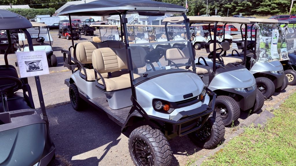 Connecticut Trailers features the following options for this E-Z-GO Golf Car: • Lifted • Premium Mushroom Seats • Paramount Black Spider Wheels • Explorer Rugged Pkg. • Turn Signals • Split Windshield • Convex Mirror • Unique Key • Glove Box • Halogen Head-lights 2026 E-Z-Go Express 6 Gas Lifted PlatinumTake the Long Way HomeTake the whole family or a bunch of friends along for the ride in the 6-passenger Express 6 — and expect to turn a few heads. You and your passengers will enjoy extended legroom, optional enhanced front suspension, and a bold, eye-catching design. Choose between our efficient 13.5-HP closed-loop EFI gas powertrain or the maintenance-free ELiTE™ lithium drivetrain powered by Samsung SDI technology.Features may include:Rear Seat with Enclosed StorageBring more along for the ride. With convenient, enclosed storage, the rear-facing seat provides both comfort and functionality.Premium Dashboard With Extra StorageExperience a stylish interior with a premium golf cart dashboard — featuring versatile cup holders and more functional storage.