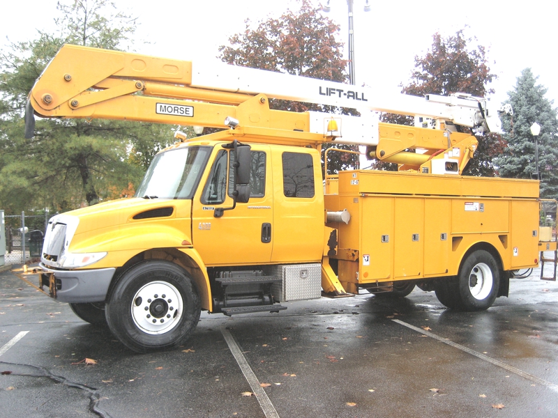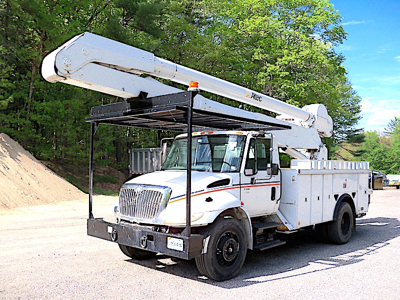 2005 INTERNATIONAL 4300. Extended Cab Bucket Truck, Rust-Free, Always Garaged, DT466, Auto, AC, AB, 33K GVW, Lift-All 60' Bucket Material Handler, Caption Winch, 4 Outriggers, 15' Rust-Free Utility Body, Drawers, Shelves, Top Storage, Strobe Work Lights, 978-462-1000, www.WestsideTruckEquipment.com (MS.tm1223)C