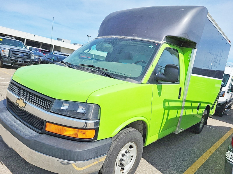 2015 CHEVY 3500 SRW CUBE VAN. V8, Auto, AC, 9900 GVW, NO D.O.T. HEALTH CARD REQUIRED, One Owner, Fleet Maintained, 12,485 Miles, (2 Available),