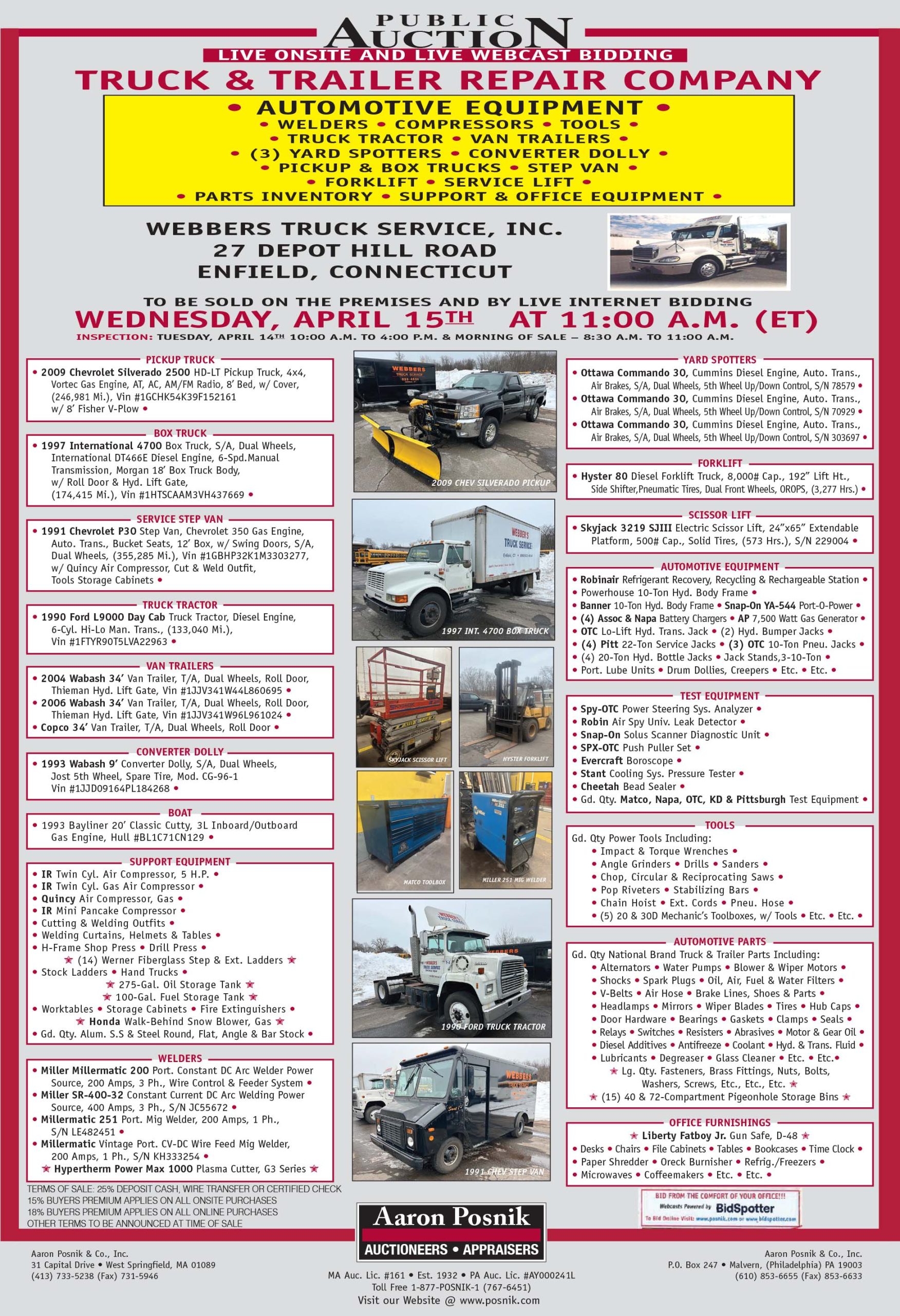 Aaron Posnik Auctioneers – Enfield, CT – Live Onsite & Live Webcast Bidding