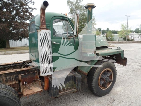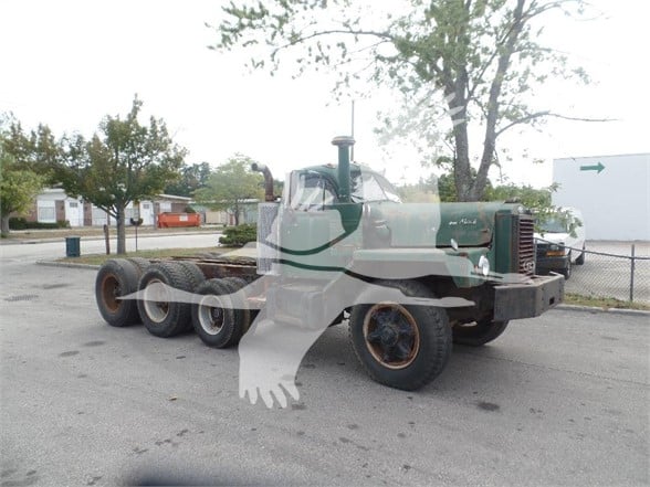 1964 MACK B813, TURBO, TRI AXLE CAB & CHASSIS, MACK 673 MOTOR, 5 X 4 QUAD BOX, 55,000 LB REARS, SPRING RIDE, 11 X 24 INCH RUBBER, RUNS AND DRIVES, FRAME IS PERFECT, NEEDS HOOD, 99% COMPLETE, NO RUST, VERY GOOD CONDITION. CALL FOR MORE INFORMATION.