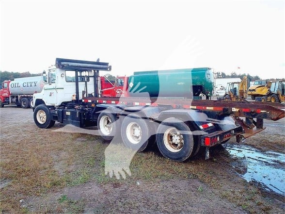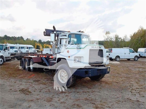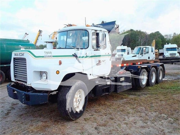 1988 MACK DM690S TRI AXLE ROLLOFF TRUCK, 300 HP, MAXITORQUE 6 SPEED, AIR LIFT 3RD AXLE, DOUBLE FRAME, CAMELBACK SUSPENSION, 244 IN WHEELBASE, HYDRAULIC WINCH. CALL FOR MORE INFORMATION.