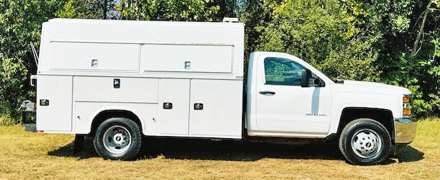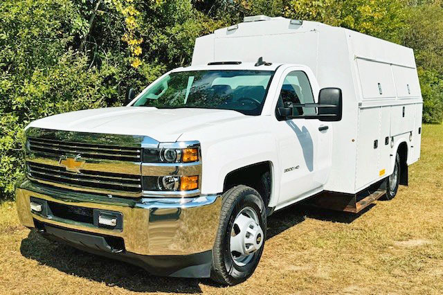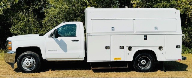 2015 CHEVY 3500. DRW, 11’ ENCLOSED UTILITY – LUBE TRUCK