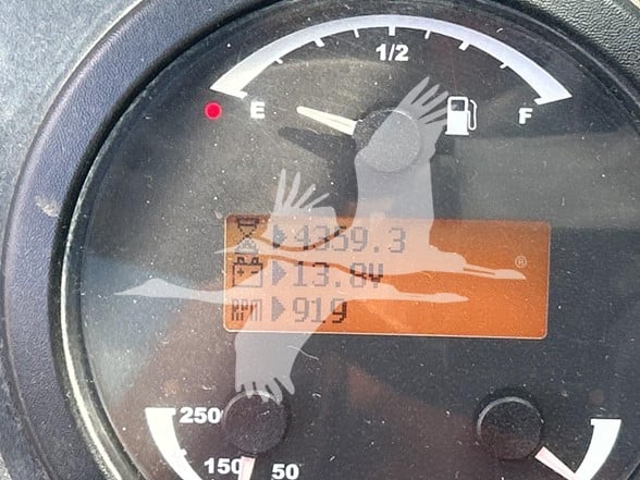 12,000LB CAPACITY, 55' LIFT HEIGHT, EROPS, A/C, AUXILIARY HYDRAULICS, 60" FORKS, FRAME LEVELING, FRONT OUTRIGGERS, 17.5-25 TIRES, M5836, 75000
