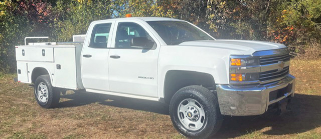 2016 CHEVY 2500 DOUBLE CAB 4X4 8’ UTILITY. 6L V8, Auto, AC, PW, PL, Tilt, Rev. Camera, Bluetooth, 211K, Fleet Maintained, $14,400., (Will Separate), Westport, MA 508-636-5050