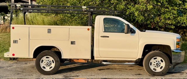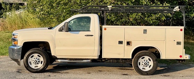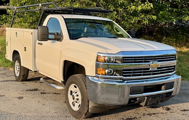 2018 CHEVY 2500 RWD 8’ UTILITY W/Ladder Racks. 6L V8, Auto, AC, Tilt, Backup Camera, Blue Tooth, 9300 GVW, One Owner, Fleet Maintained, 223K, Southern Truck, Super Clean, $14,400. (Will Separate), Westport, MA 508-636-5050