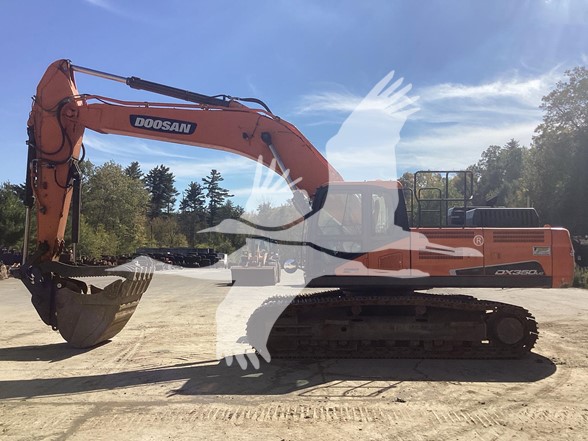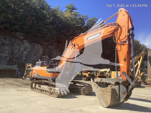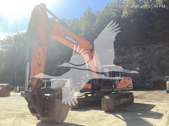 A/C, 10'6" STICK, AUXILIARY HYDRAULICS, TEFRA HYDRAULIC QUICK COUPLER, 56" DOOSAN DIGGING BUCKET, STRICKLAND 4-TINE MAIN PIN HYDRAULIC THUMB (IM4528), TIER-4 FINAL DIESEL ENGINE, REAR VIEW CAMERA, 34" TRIPLE-GROUSER PADS, E5459, 159000
