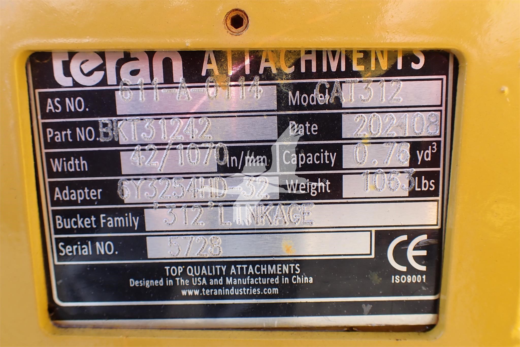 42" digging bucket for Cat 312, 8 3/4" spread, 16" center to center, 65 mm pin holes