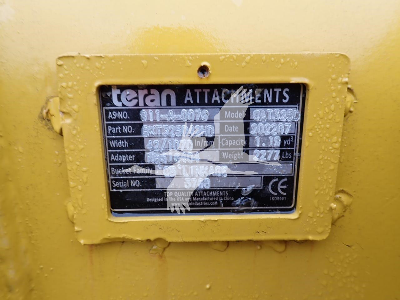 42" digging bucket for Cat 325D, 13 7/8" spread, 19" center to center, 90 mm pin holes