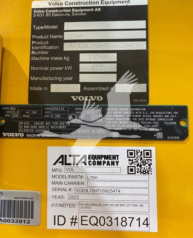3V, SLC, BSS, QC, NO BKT, 57" FRK, BR 20.5R25, HOURS/LOCATION/CONDITION SUBJECT TO CHANGE