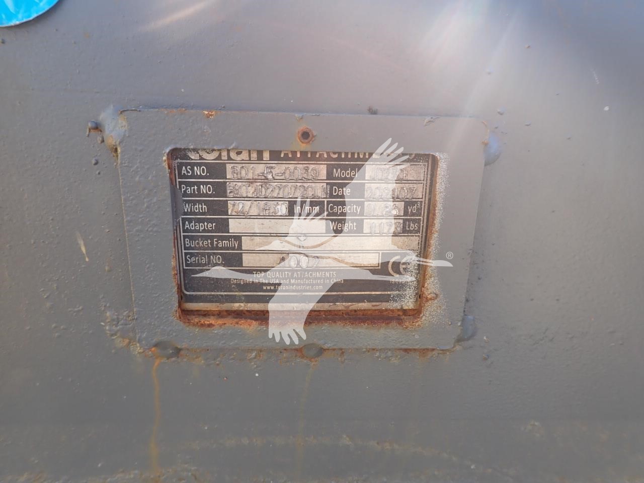 72" cleanup bucket, 16 1/8" spread, 18 3/4" center to center, 90 mm pin holes