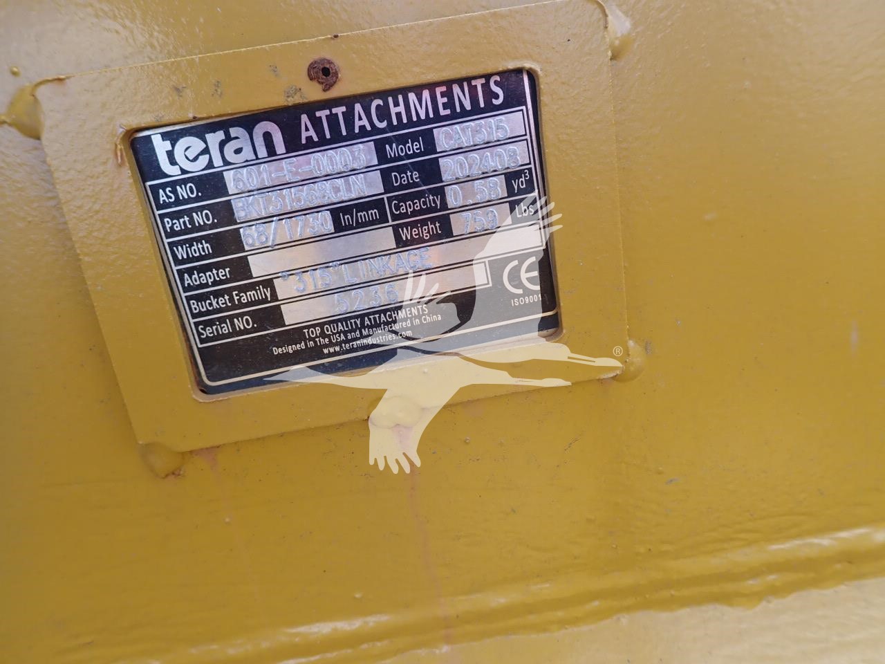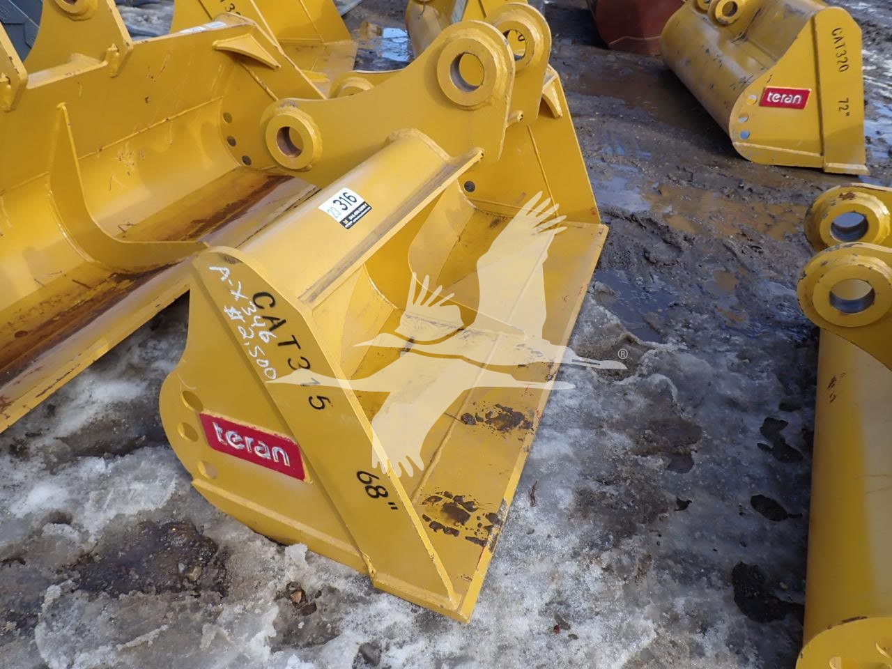 68" cleanup bucket for Cat 315, 11 1/4" spread, 18 1/4" center to center, 70 mm pin holes