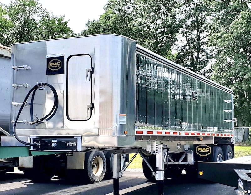 2025 MAC 28’ ALUMINUM DUMP TRAILER: 8 ALUMINUM RIMS, ALUMINUM FRAME, AIR RIDE, ½ PLASTIC LINER.
