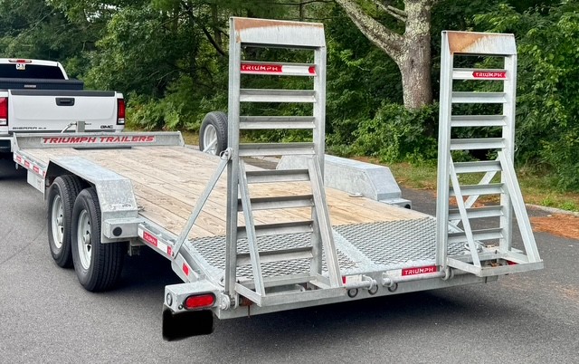 2025 TRIUMPH EQUIPMENT TRAILER. Galvanized Dipped, 8-Lug Wheels, 16” Tires, 14K GVW, Rub Rail W/Stake Pockets, Wooden Deck, D-Rings, LED Lights, Excellent Condition, $7,400., Westport, MA 508-636-5050