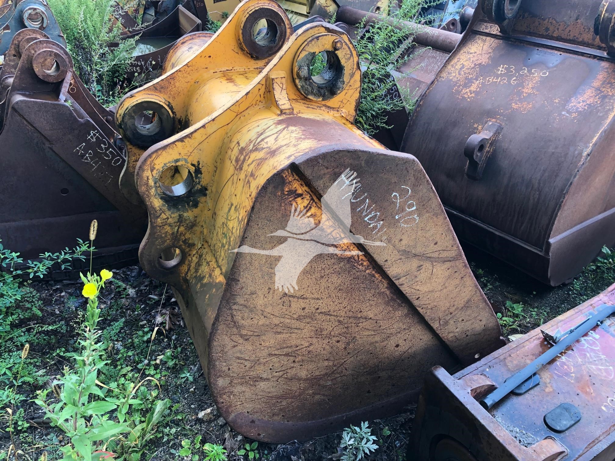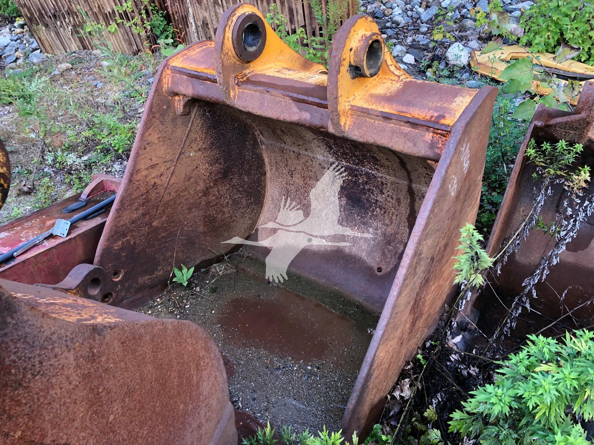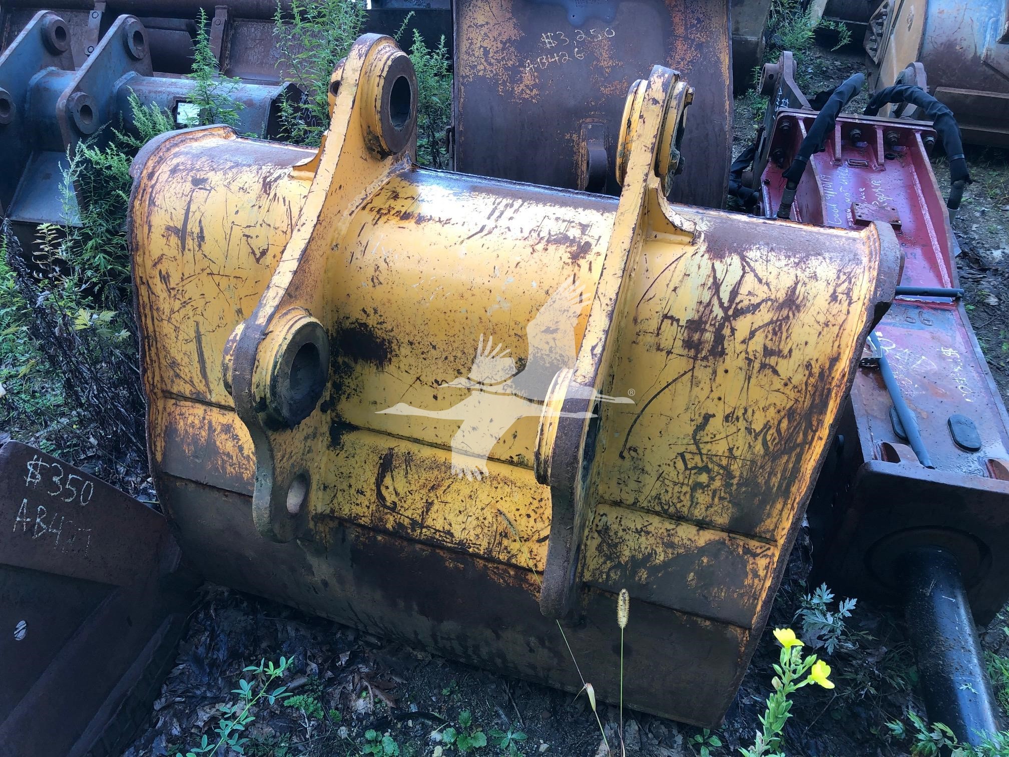 50" digging bucket, 15 3/4" spread, 20" center to center, 90 mm pin holes, missing 2 teeth - shanks worn down