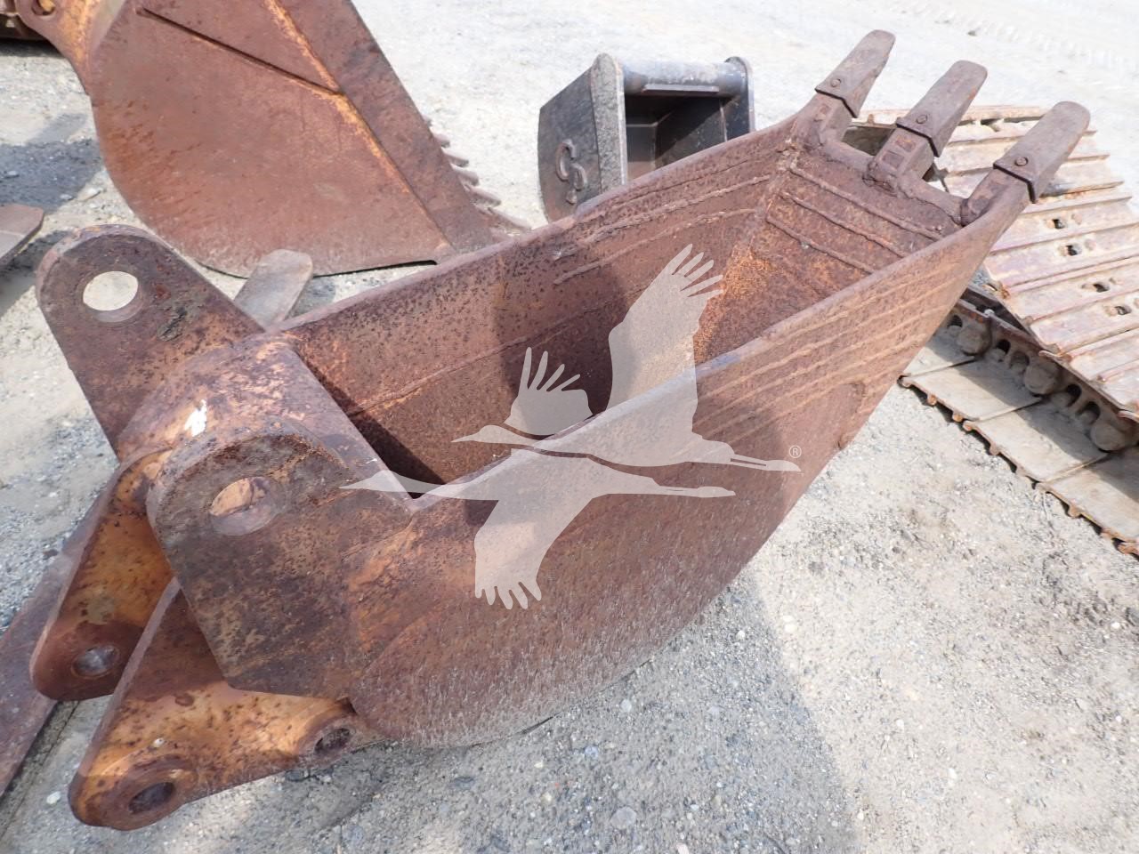 12" digging bucket for Case 590 backhoe, 10" front spread, 5 1/8" rear spread, 14" center to center, 1 3/4" front pin hole, 1 1/2" rear pin hole