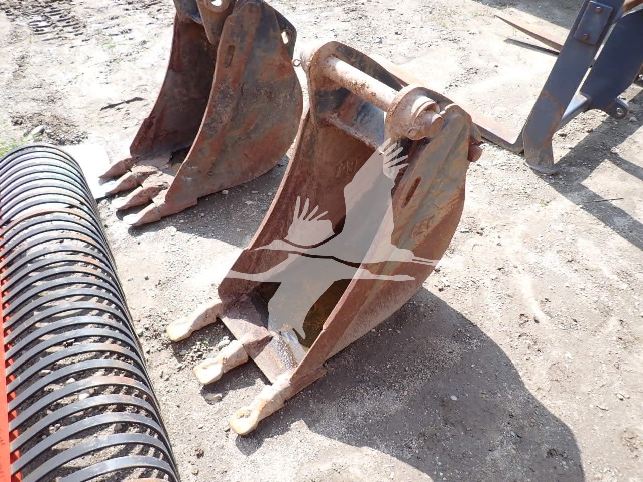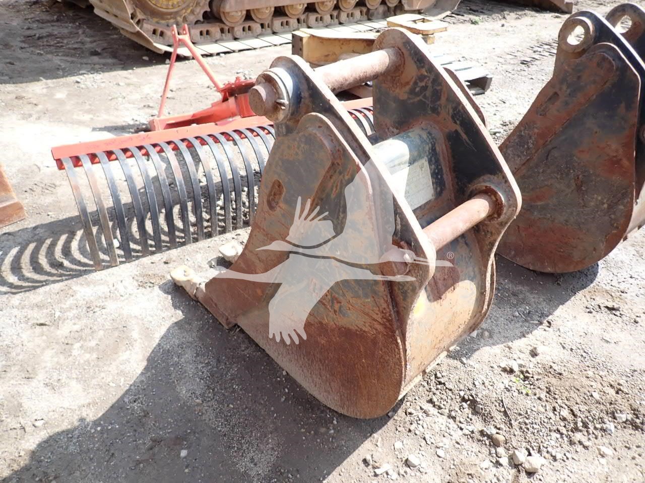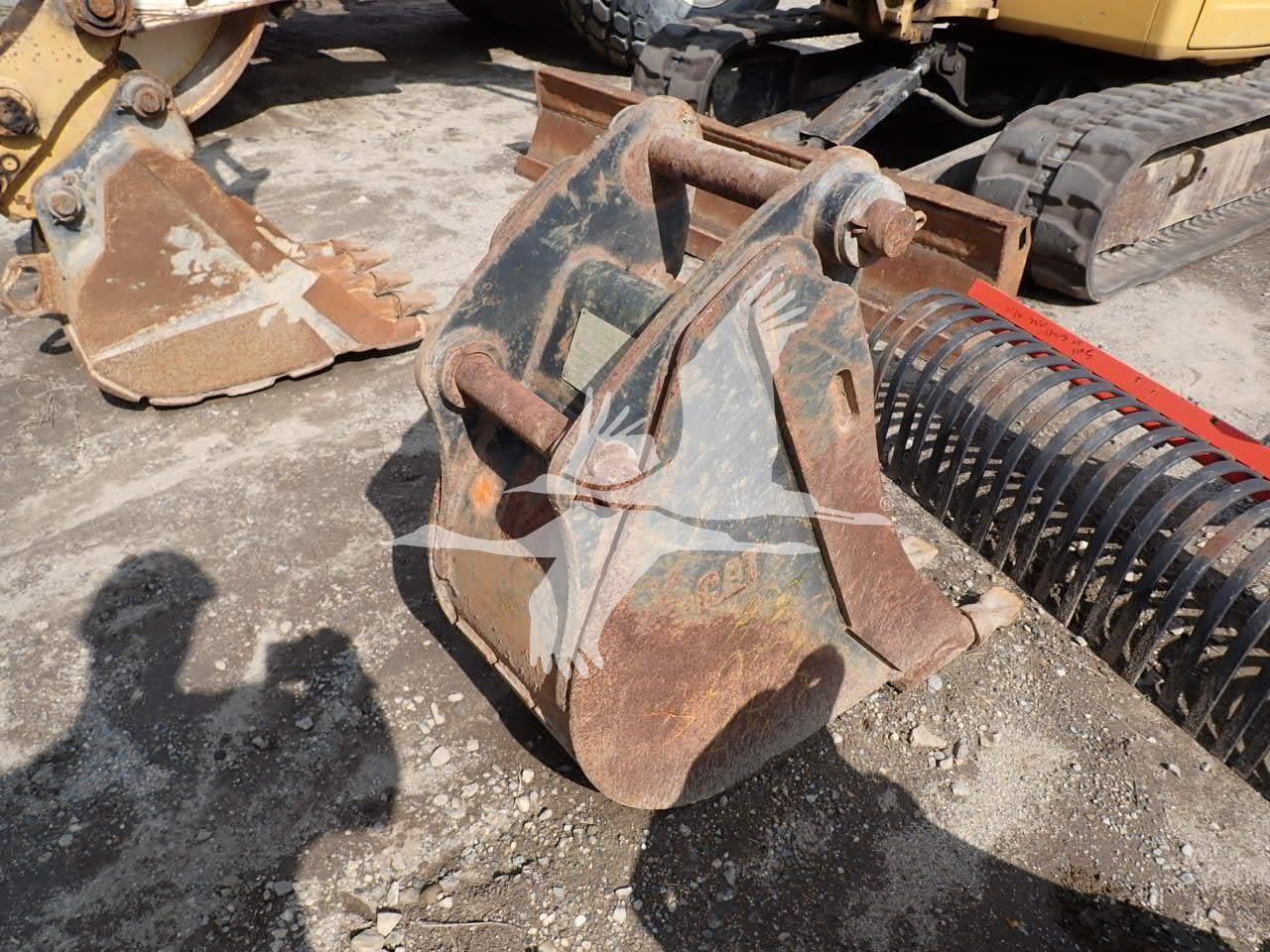 **SALE PENDING** 16" digging bucket for Cat backhoe, 10 1/8" front spread, 8 1/4" rear spread, 13 3/4" center to center, 50 mm front pin hole, 45 mm rear pin hole