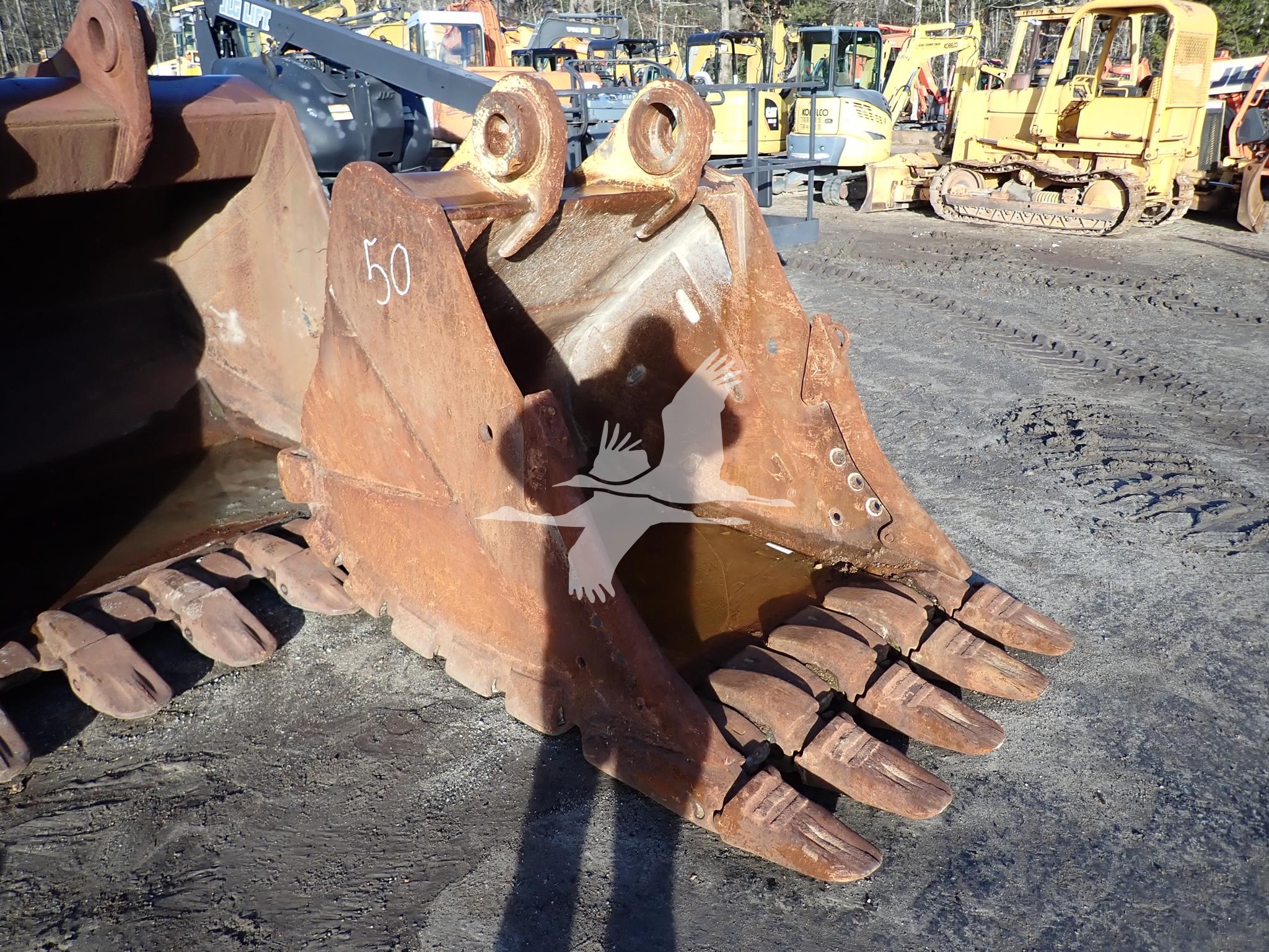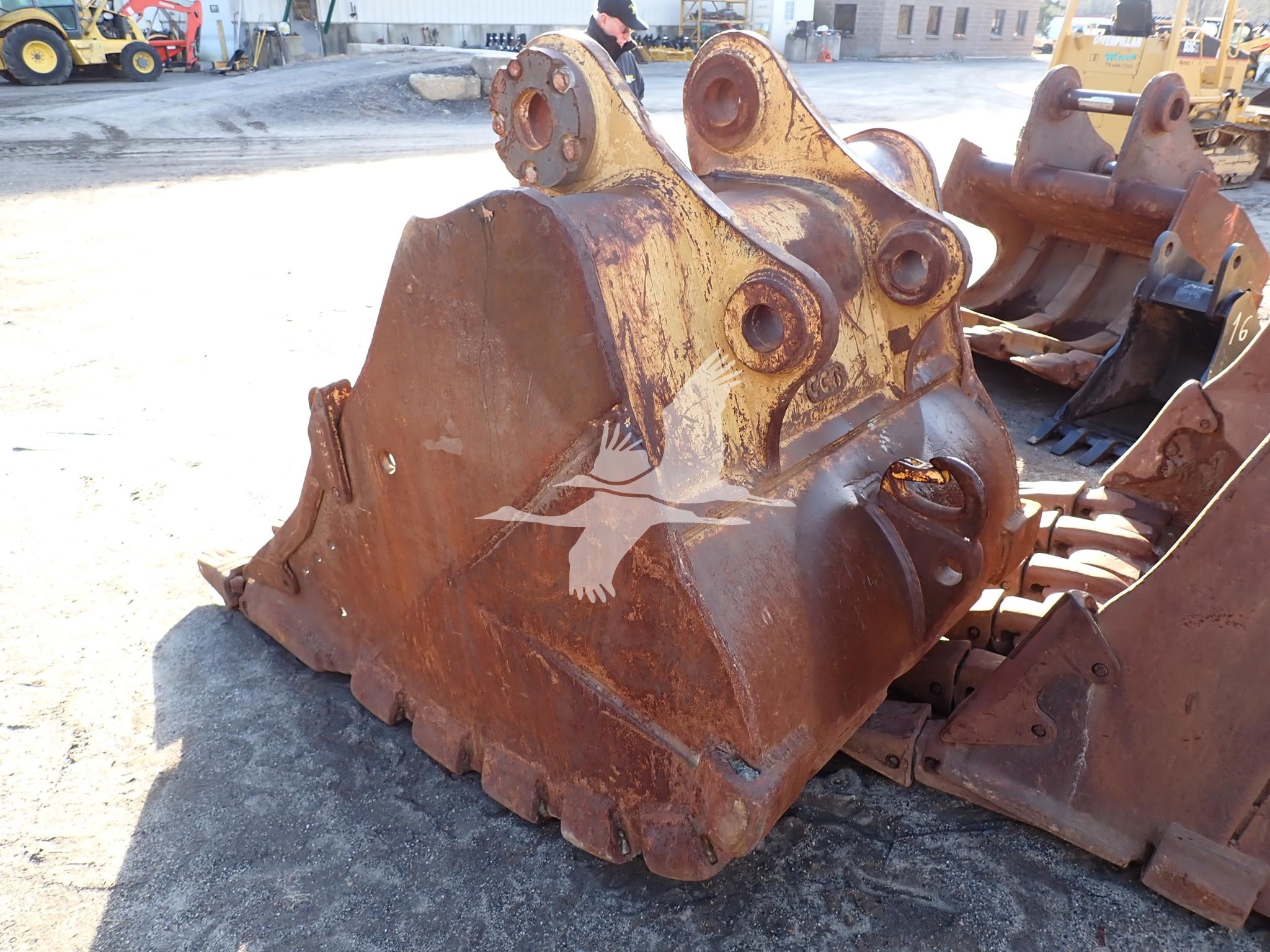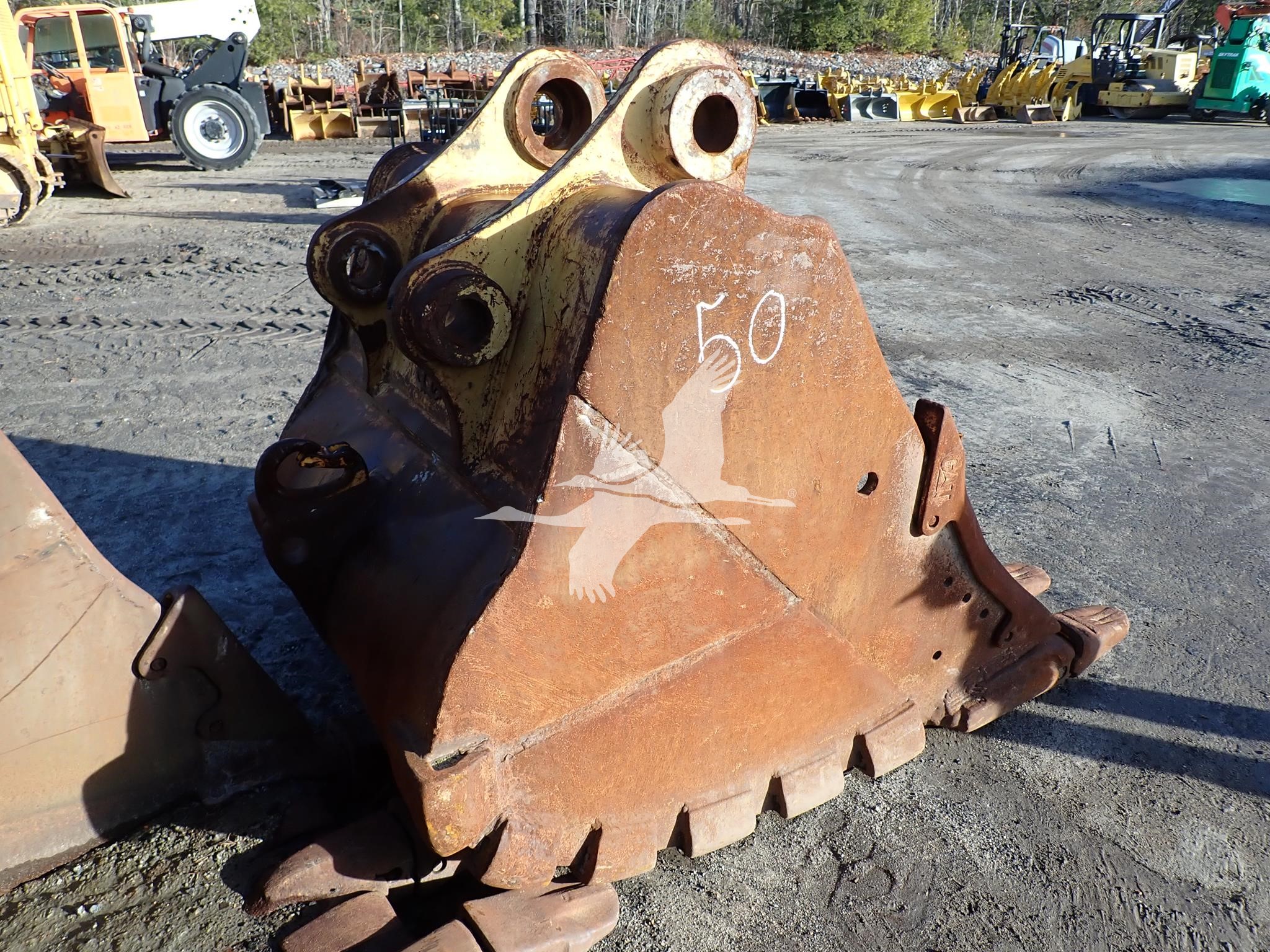 54" digging bucket, 17 1/2" spread, 23" center to center, 100 mm front pin holes, 80 mm rear pin holes