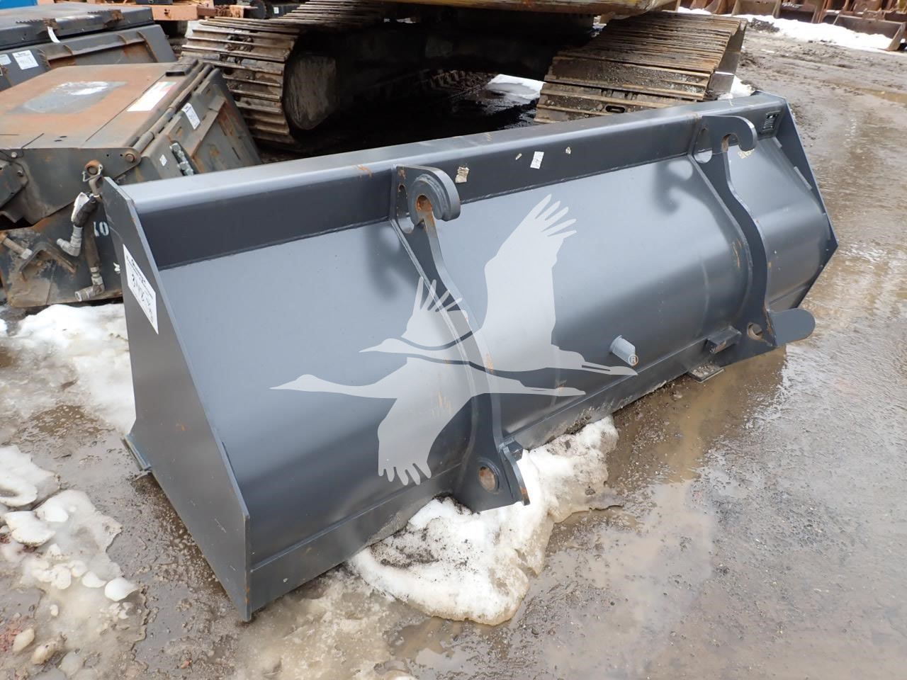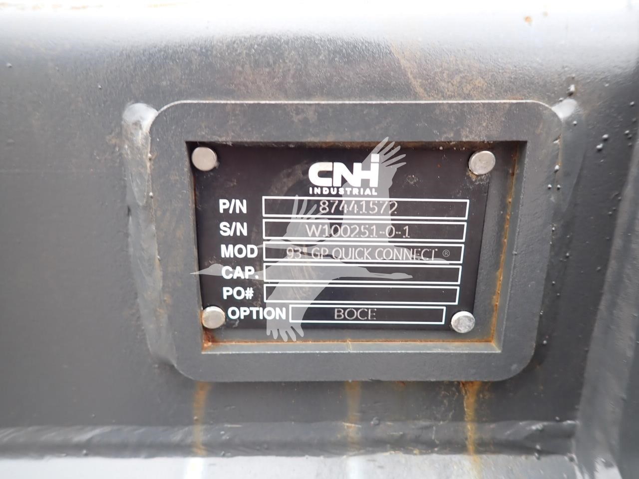 GP front bucket for Case backhoe w/ coupler, 46 1/2" spread, 25 1/4" from pin to coupler hook, 2" pin holes