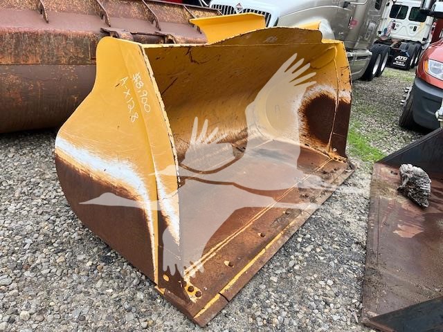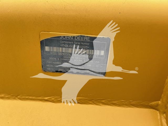 3.5 yard bucket fits JD 544/624 w/ coupler, top spread 27 & 1/2" between hooks, bottom spread 28 & 7/8", vertical measurement pin center up to hook 17 & 3/4"
