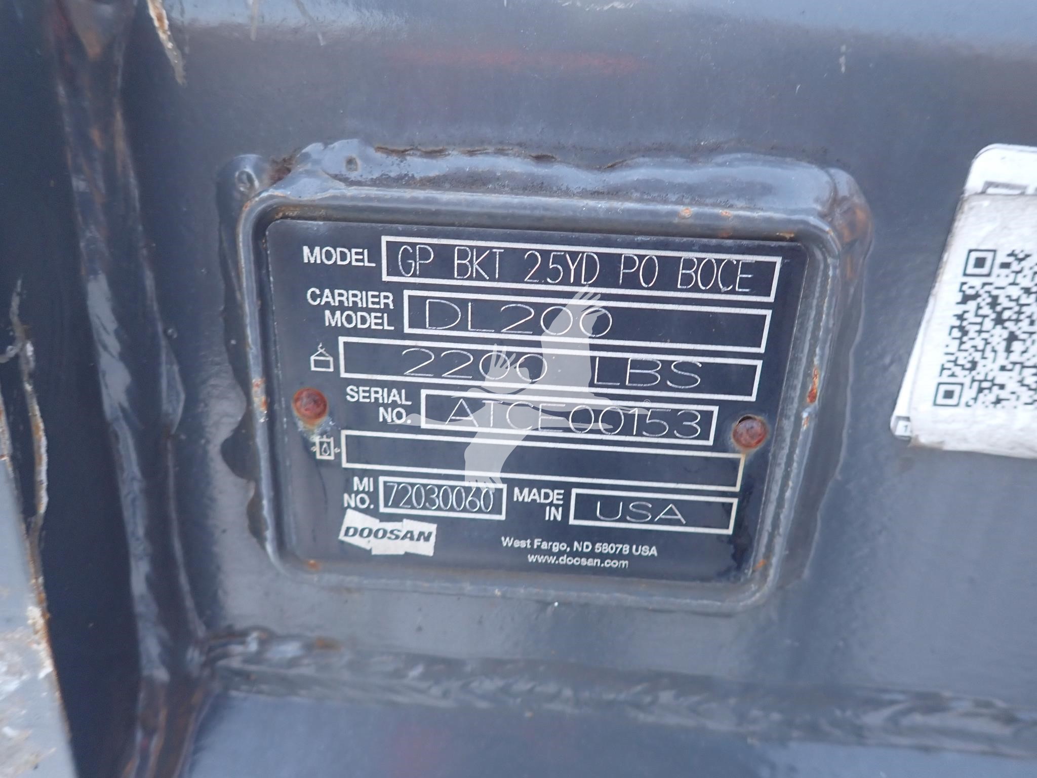 2.5 yard GP pin-on bucket for Doosan DL200, 41" spread, 70 mm pin holes