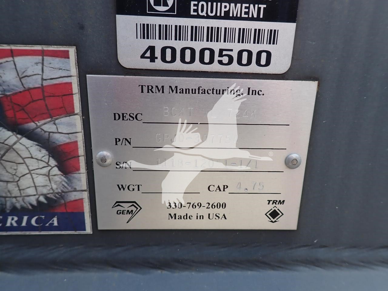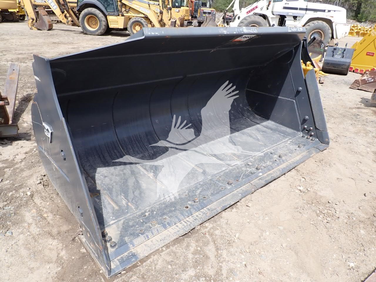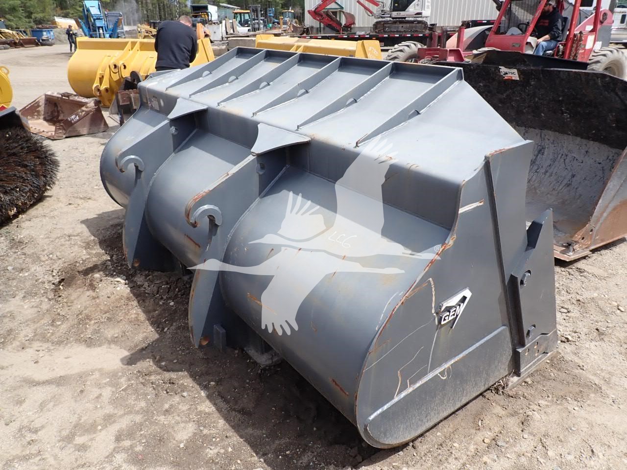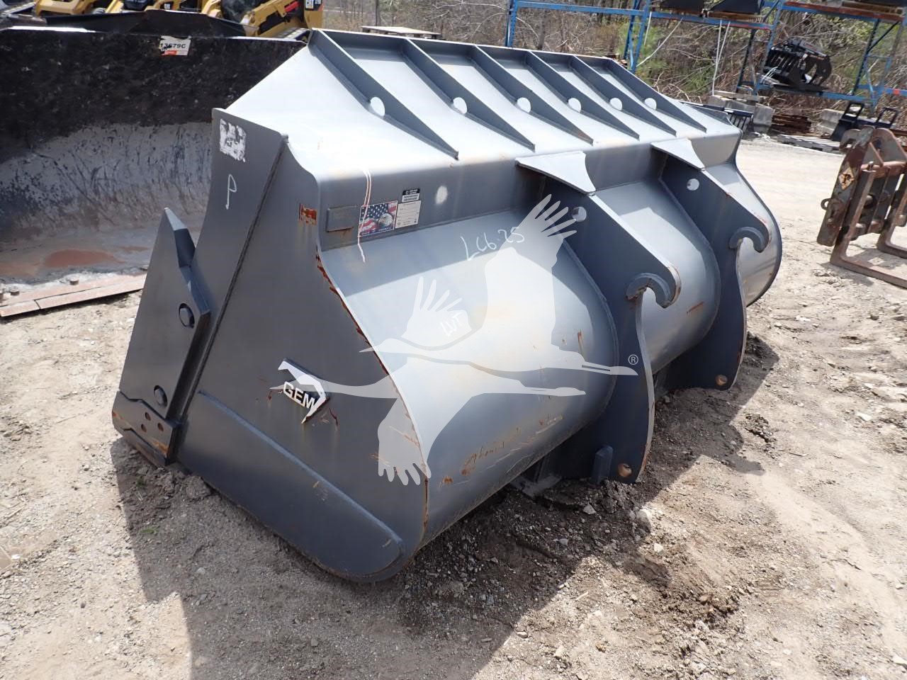 4.75 yard GP bucket for loader w/ coupler, 36" top spread, 37 1/2" bottom spread, 25 1/2" from pin hole to coupler hook, 50 mm pin holes
